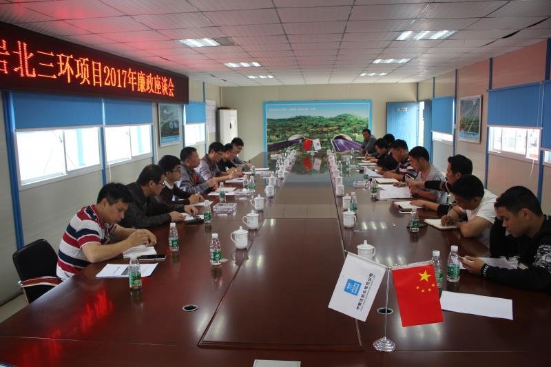 徹落實集團公司黨委關于黨風廉政建設重要部署,預防工程腐敗事件發生,3月28日下午,北三環承建單位中建七局組織召開項目廉政建設座談會,城投公司代表、施工單位、監理單位負責人和各主要材料供應商負責人參加了會議。