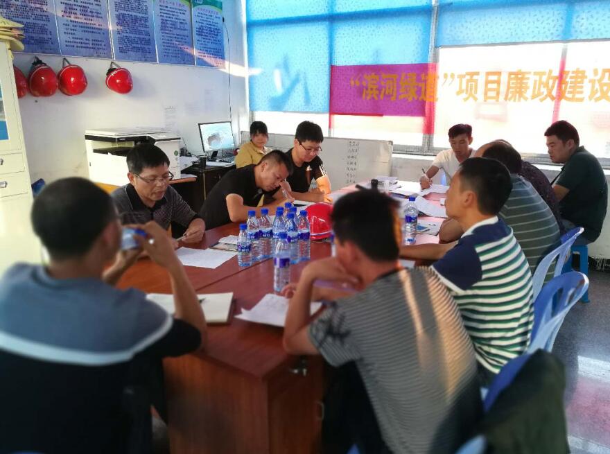為進一步加強工程項目廉政建設,增強工程管理人員廉潔自律意識,從源頭上杜絕各種違法違紀行為發生,10月16日-27日,市城投公司黨支部書記劉有才和公司副總經理、紀檢委員林榮煥分別帶隊到濱河綠道、三橋一路、金雞路二期管廊工程等新開工項目部召開項目廉政建設座談會。