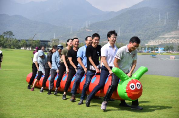 與傳統(tǒng)運動會不同,此次趣味運動會環(huán)節(jié)豐富、趣味十足、合作性強,涵蓋了旋轉(zhuǎn)接水、毛毛蟲、跳一跳三個項目環(huán)節(jié)。所有參賽人員按隨機性破冰重組,分為四隊,每個項目都是以多人合作為比賽模式,不但考驗了參賽者的協(xié)調(diào)能力和身體素質(zhì),更考驗了團隊合作精神。賽場上,隊員們笑容滿臉,精力充沛,全力投入,場上時時爆出掌聲和拼搏的歡呼聲,真正賽出風(fēng)采,賽出凝聚力。