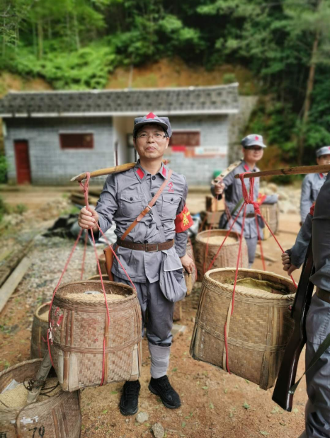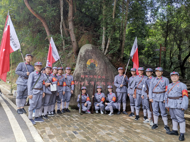 隨后,學員們在中央蘇區松毛嶺戰役遺址,開展了瞻仰紅軍無名烈士墓、重走紅軍路等現場情景教學,在郭公寨前線指揮所前,學員們聽取了紅軍戰士艱苦戰斗生活的詳細生動講解,并親自感受送糧送彈、綁擔架、護送傷員等,用實際行動致敬革命先烈。