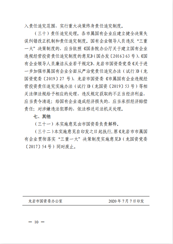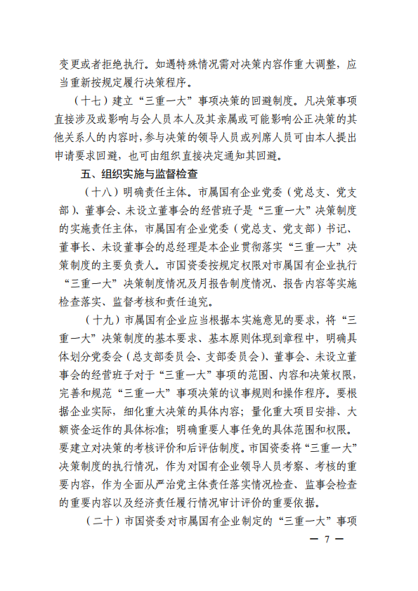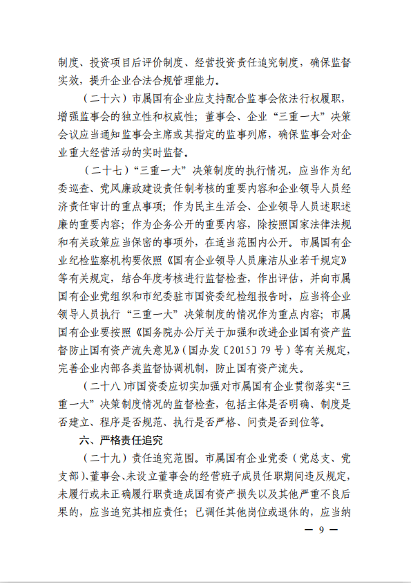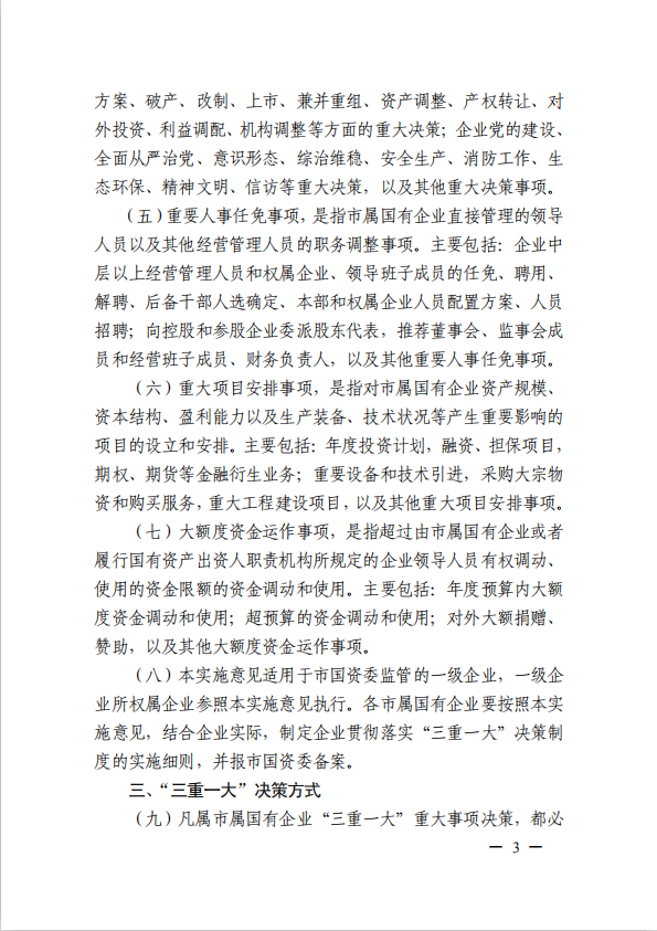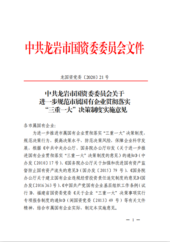 關于進一步規范市屬國有企業貫徹落實“三重一大”決策制度實施意見(國資黨委[2020]21號)